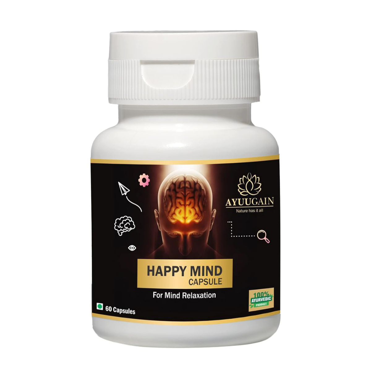 Happy Mind is Ayuugain’s product that help in brain related issues like, weak memory, stress and anxiety issues.